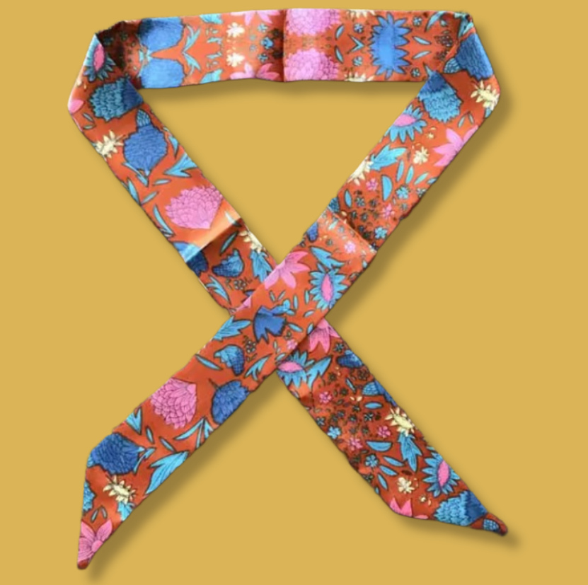 Terracotta floral design—warm, vibrant, and expressive. Perfect for summer/autumn transitions, earthy wardrobes, and tan bags.